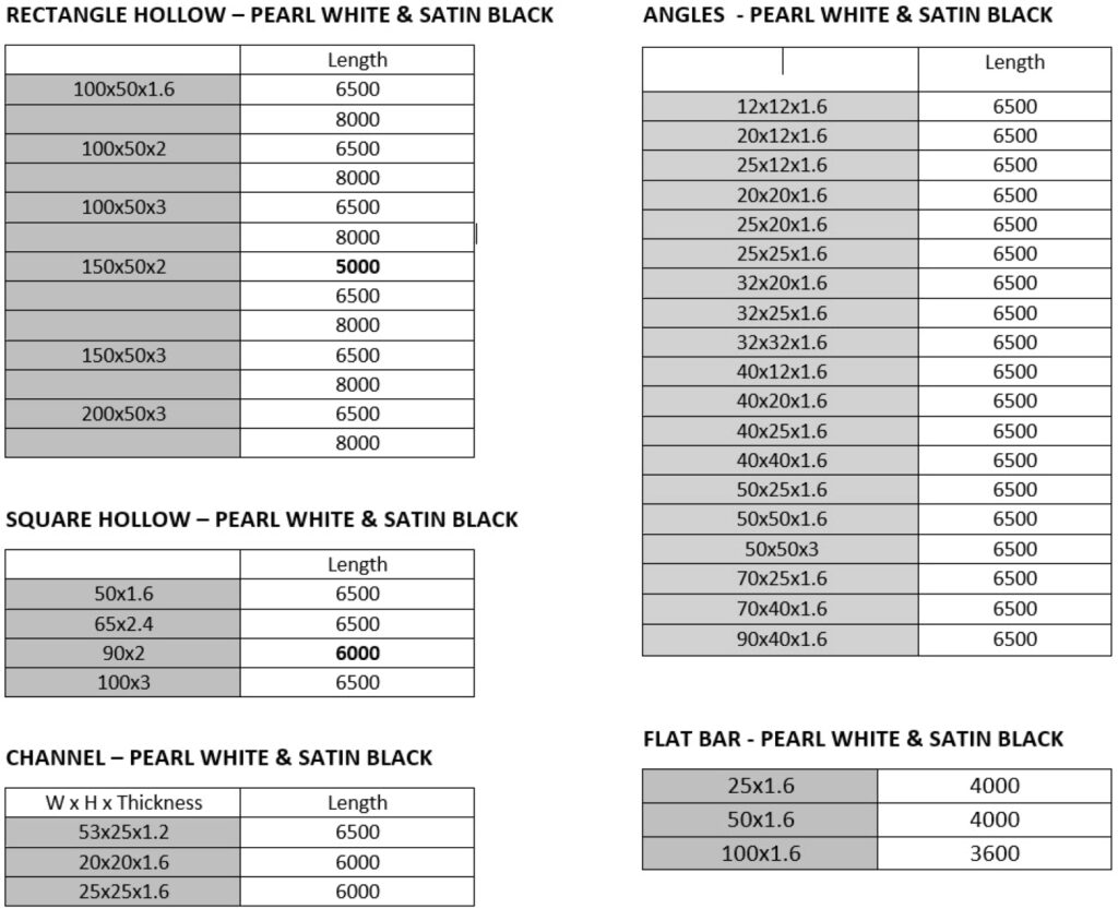 White and black Angle, Box Section or Flat bar (ALL IN STOCK)